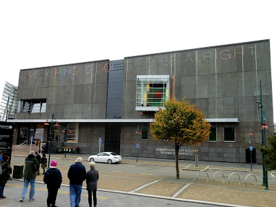 The words across the top of the art gallery are: "Everything will be all right."